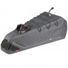 Una bolsa de sillín grande e impermeable para viajes en bicicleta que se puede montar y desmontar en un abrir y cerrar de ojos, sin necesidad de fijaciones. Basta con encajar el adaptador para el contorno del sillín y fijar el lazo de velcro alrededor de la tija del sillín. La bolsa se ajusta de forma segura sin balancearse. El volumen de la bolsa puede modificarse mediante el práctico cierre enrollable entre 8 y 10 litros, de modo que el contenido del compartimento principal acolchado queda protegido para que no se salga. Un chubasquero u otras cosas que deban estar rápidamente accesibles pueden guardarse fuera, bajo la araña de equipaje. La combinación de un portalámparas y un reflector mejora la visibilidad.