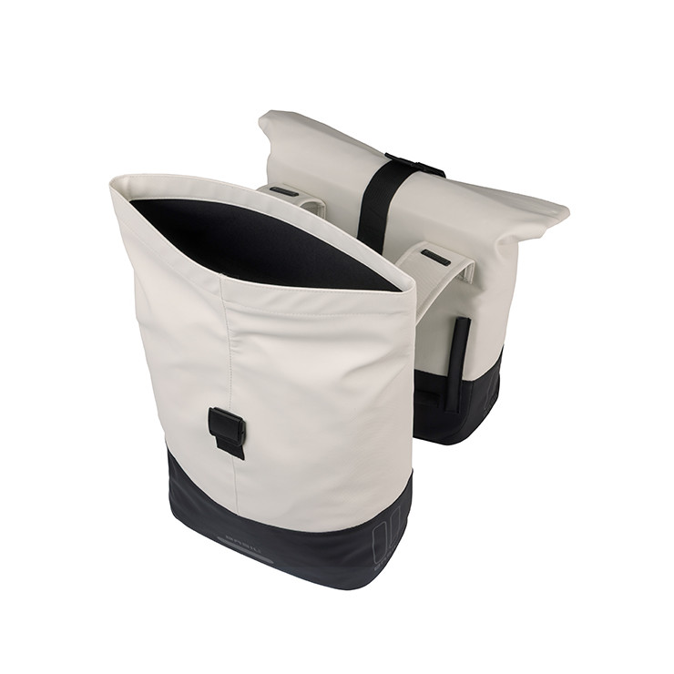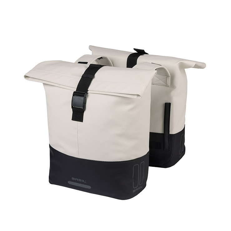 Alforjas BASIL "Cove", 28-32L, blanco roto/negra