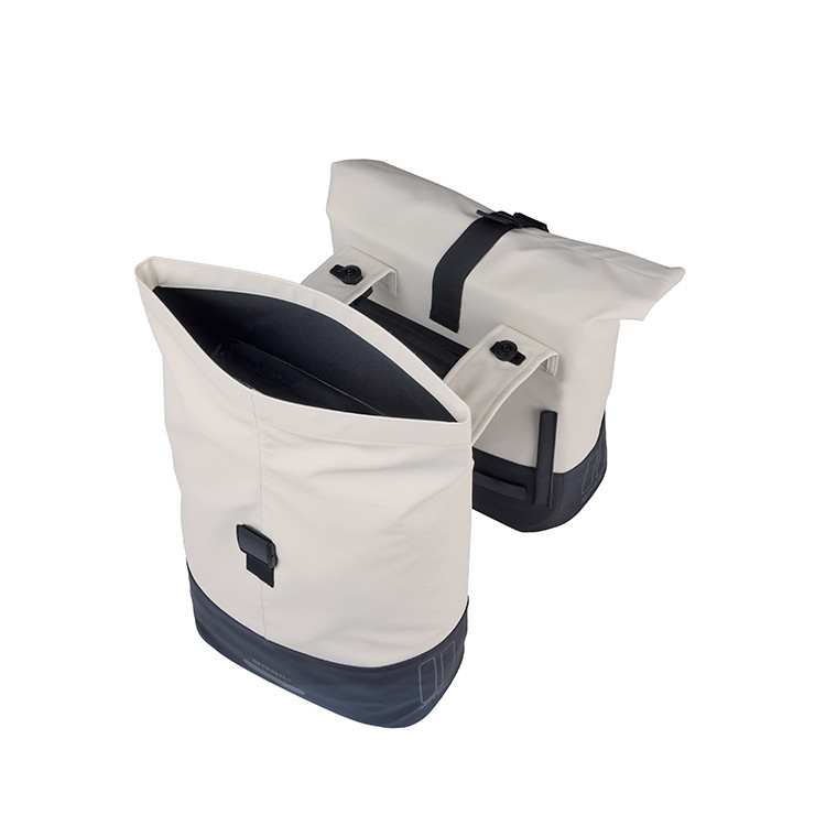 La alforja doble Basil Cove es una alforja doble espaciosa y atemporal con una capacidad de 28 a 32 litros, perfecta para el uso diario.