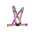 Composición: elástico (60% poliéster 40% elastán) / cinta reflectante de 2 cm (41% microperlas aluminizadas, 26% capa adhesiva, 33% soporte) / piezas de ajuste y cierre de plástico negro