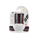 Composición: elástico (60% poliéster, 40% elastán) / cinta reflectante de 2 cm (41% microperlas aluminizadas, 26% capa adhesiva, 33% soporte) / piezas de ajuste y fijación de plástico negro.