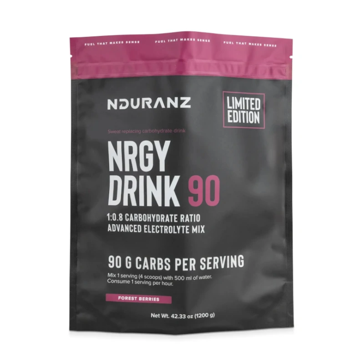 Nrgy Drink 90 es una bebida deportiva adaptada a un mayor aporte energético. Aunque ofrece la misma cantidad de carbohidratos por dosis (22,5 g) que Nrgy Drink 45, la cantidad de electrolitos y la intensidad del sabor se adaptan a la mayor cantidad en una sola botella.