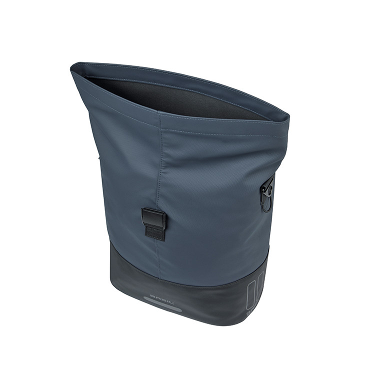 La bolsa Basil Cove es una bolsa para bicicleta elegante y atemporal con una capacidad de 14 a 16 litros y ganchos MIK.
