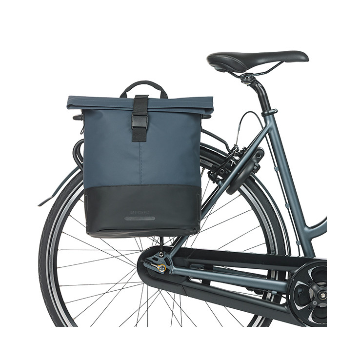 La bolsa Basil Cove es una bolsa para bicicleta elegante y atemporal con una capacidad de 14 a 16 litros y ganchos MIK.