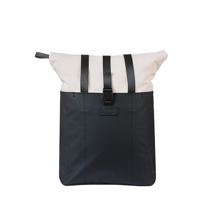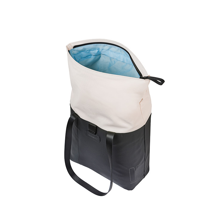 La bolsa para bicicleta Basil Vive es una bolsa elegante y práctica con una capacidad de 15 a 20 litros, equipada con ganchos MIK.