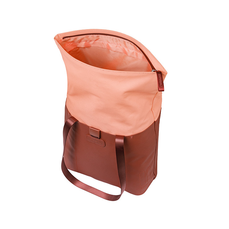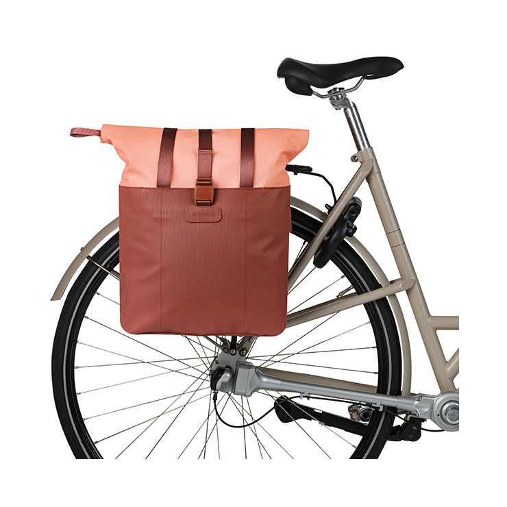 La bolsa para bicicleta Basil Vive es una bolsa elegante y práctica con una capacidad de 15 a 20 litros, equipada con ganchos MIK.