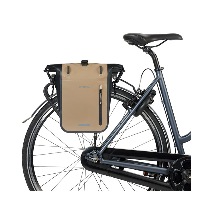 Alforja impermeable BASIL "Rivo M" MIK Hooks, 12-15L, arena/negra
