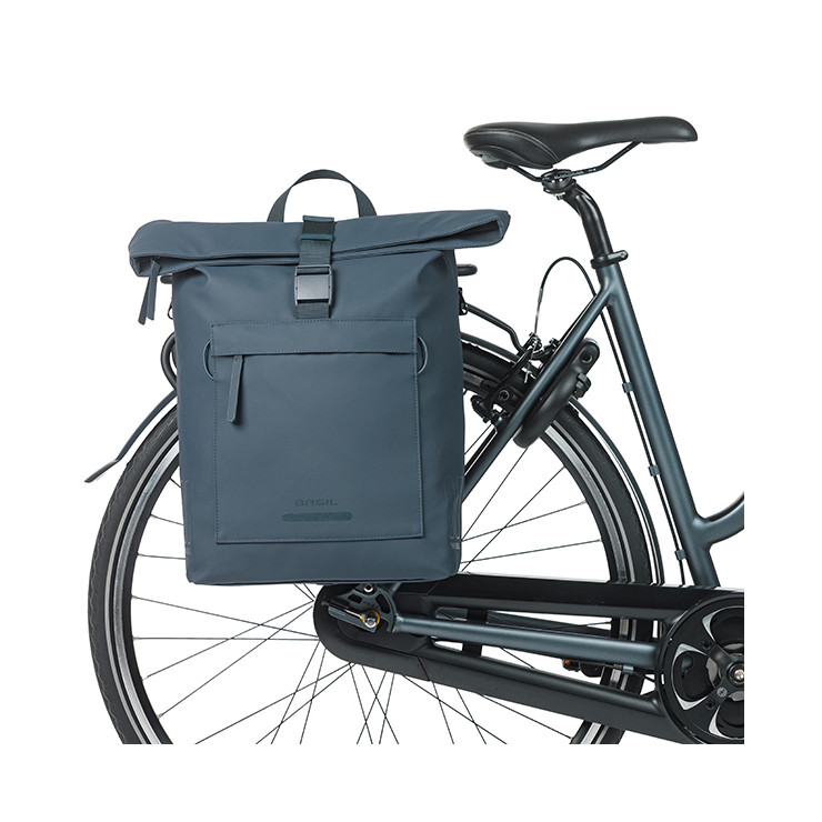 La Basil Brooklyn es una bolsa para bicicleta moderna y funcional de 17 litros con ganchos MIK.
