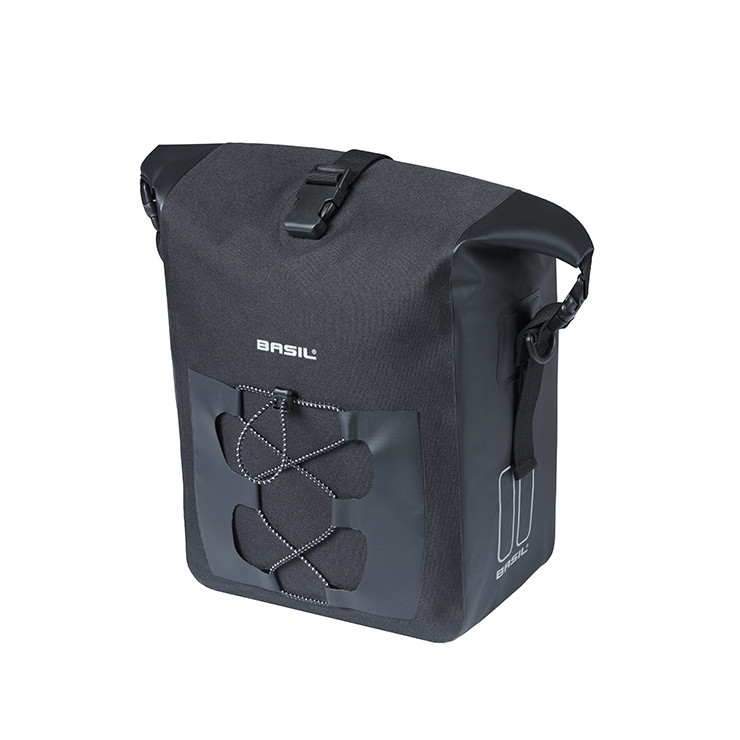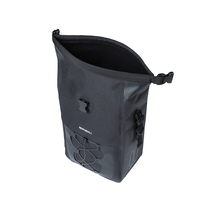 Esta bolsa negra y deportiva tiene una capacidad de 12 a 15 litros y se fija fácilmente al portaequipajes de la bicicleta gracias al sistema MIK Hooks.