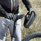 La alforja Bikepack Sport Expandable puede acomodar cargas más pesadas gracias al uso de un adaptador de sillín Contour en combinación con una placa interna rígida. Las correas internas integradas permiten sujetar con seguridad candados plegables u otros objetos pesados sin que se tambaleen.