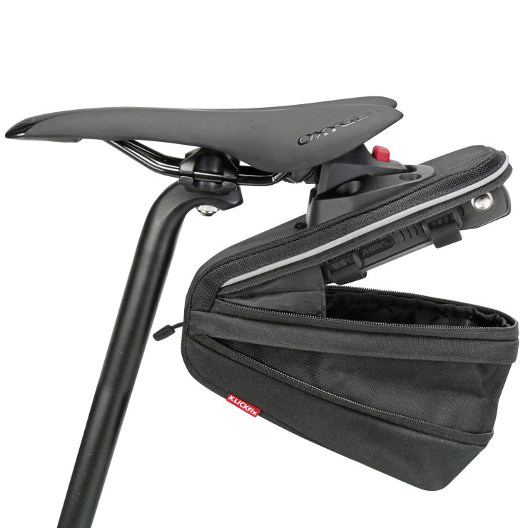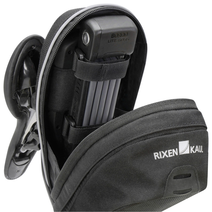 Alforja compacta con volumen ampliable, estructura extrafuerte y posibilidad de guardar candados plegables.