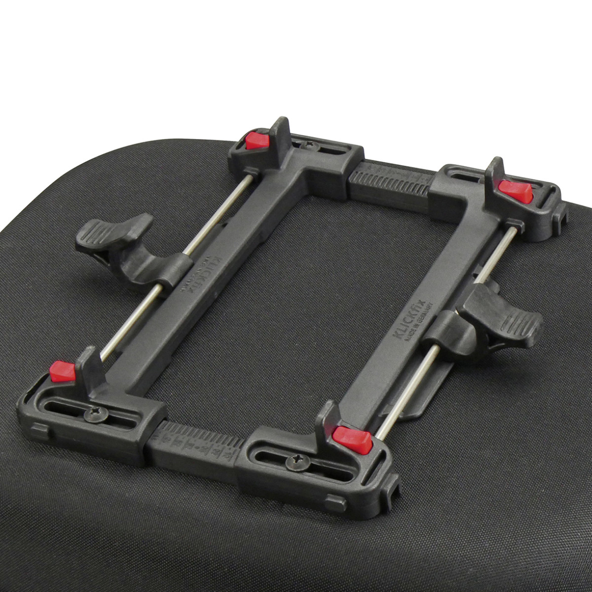 El UniKlip fija bolsas y cajas a una gran variedad de portaequipajes. Ajuste la anchura una vez. Coloque el accesorio, gire las palancas y ¡listo!