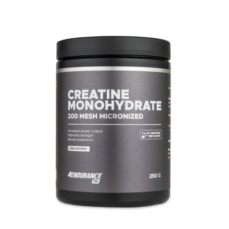 Creatina Monohidrato Micronizada 4Endurance Pro es el suplemento perfecto para atletas que desean aumentar su masa muscular, fuerza, explosividad y resistencia durante esfuerzos cortos de intensidad extrema, como sprints y levantamiento de pesas.