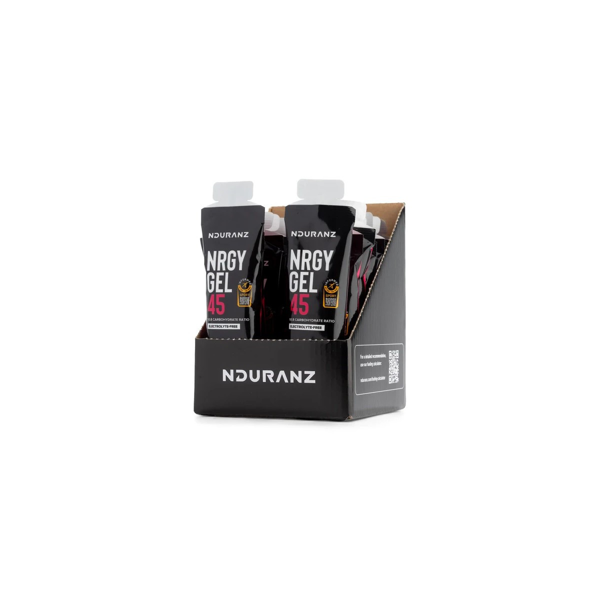 Nrgy Gel 45 (sin electrolitos) aporta 45 gramos de hidratos de carbono gracias a su relación glucosa-fructosa científicamente validada de 1: 0,8 para una absorción óptima.