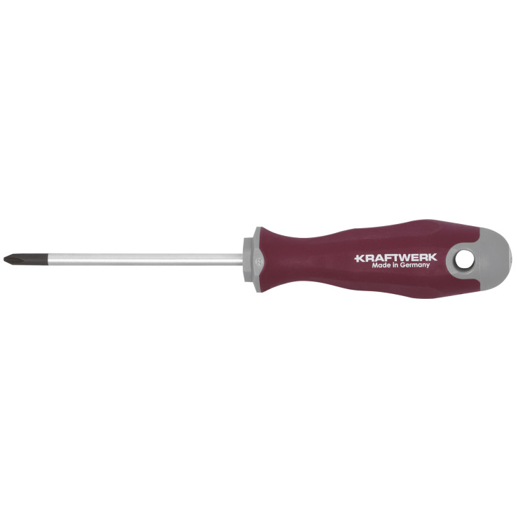 PRO LINE Destornillador Phillipps - MADE IN GERMANY - Mango ergonómico de gel/elastómero, diseñado para adaptarse a la forma de la mano - Mango multicomponente - Agarre suave, liso y sin costuras para un máximo confort y una mínima fricción - Mango con diseño antideslizante - Agujero en la cabeza del destornillador - Símbolos de tornillo en la cabeza del destornillador.