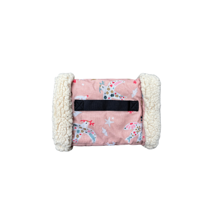 Pasa el cinturón a través del accesorio y luego introduce las manitas de tu hijo en esta manga térmica, forrada de un acogedor peluche para mantener el calor.
