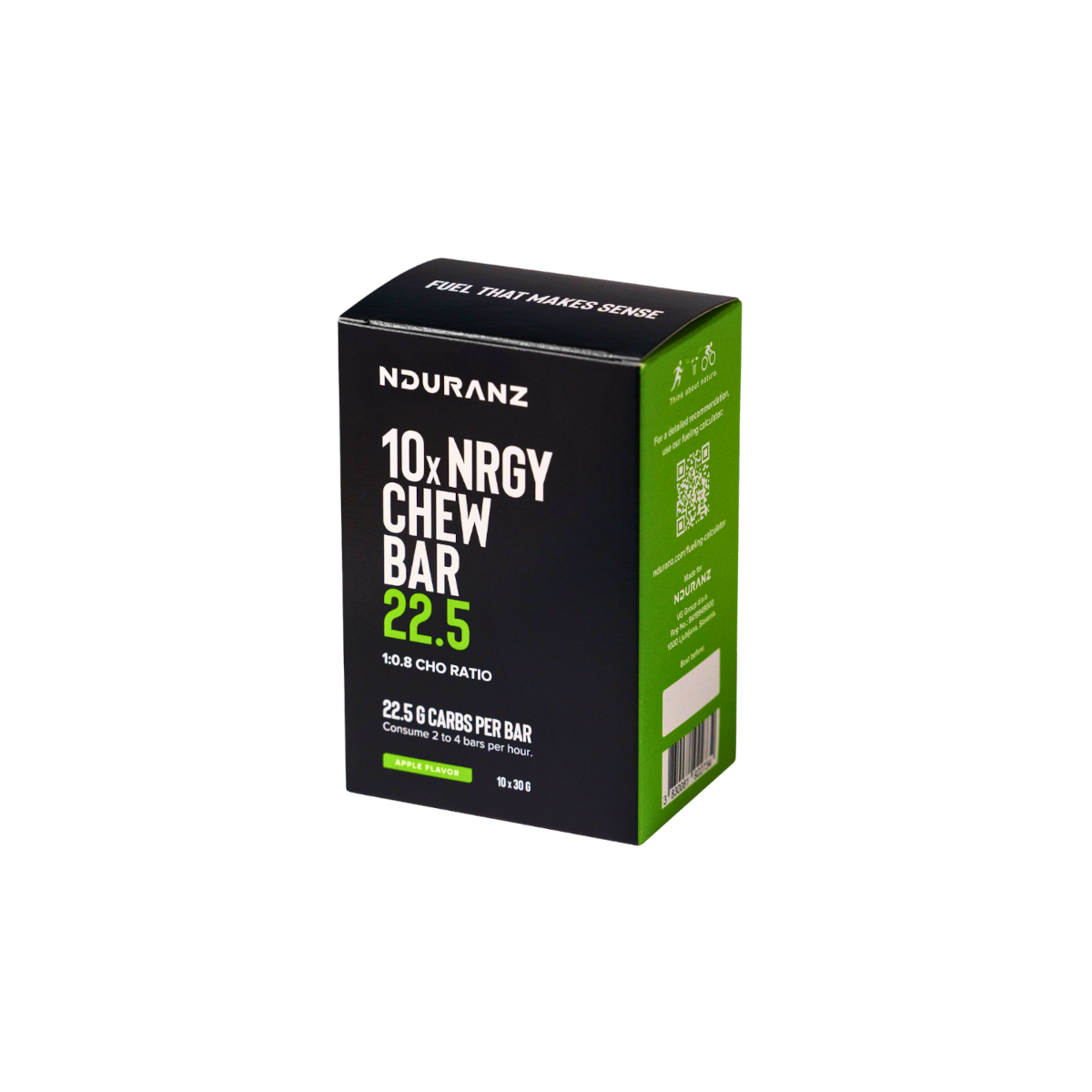 Nrgy Chew Bar 22.5 Nduranz proporciona una dosis precisa de 22.5g de carbohidratos de rápida absorción, garantizando una energía estable durante todo tu entrenamiento.