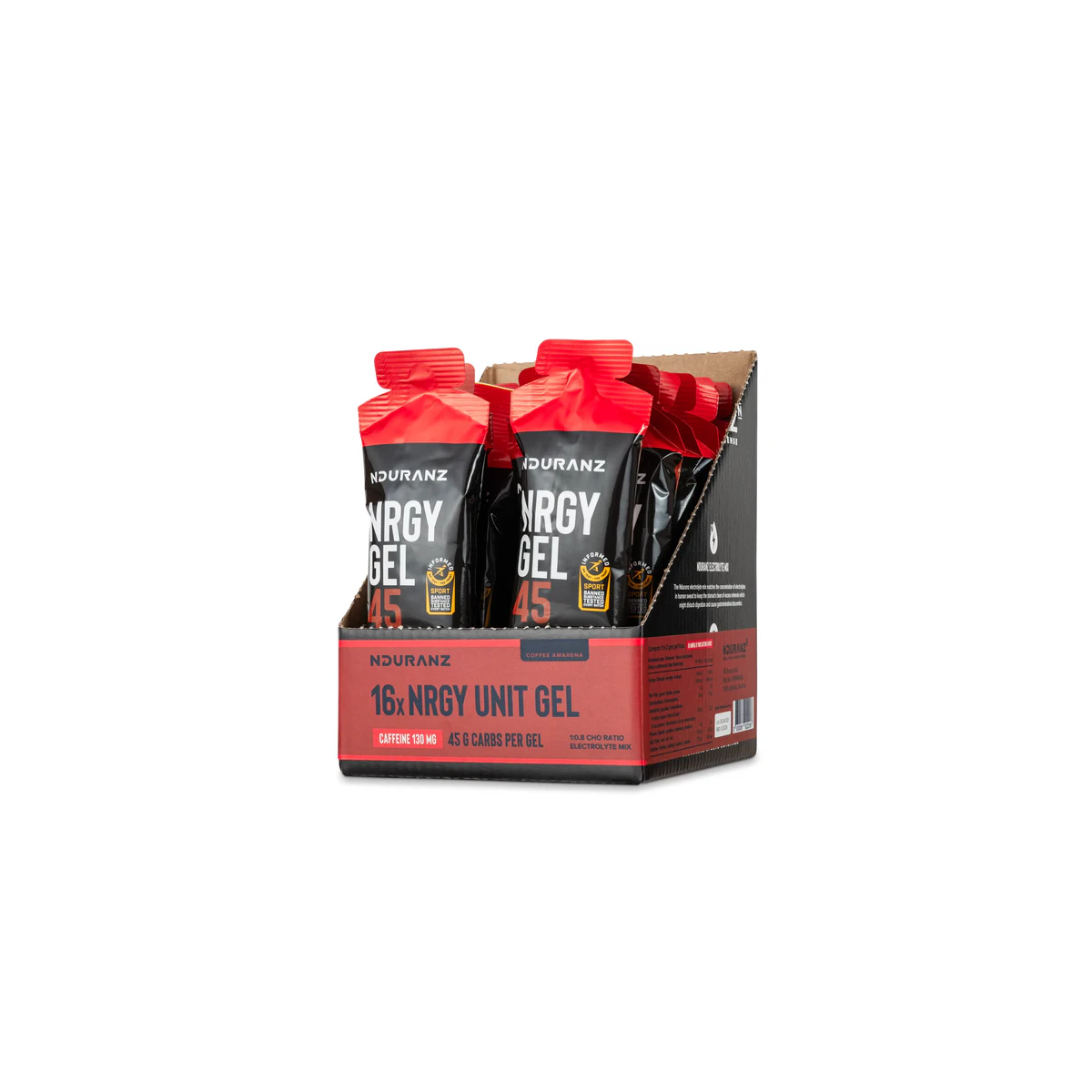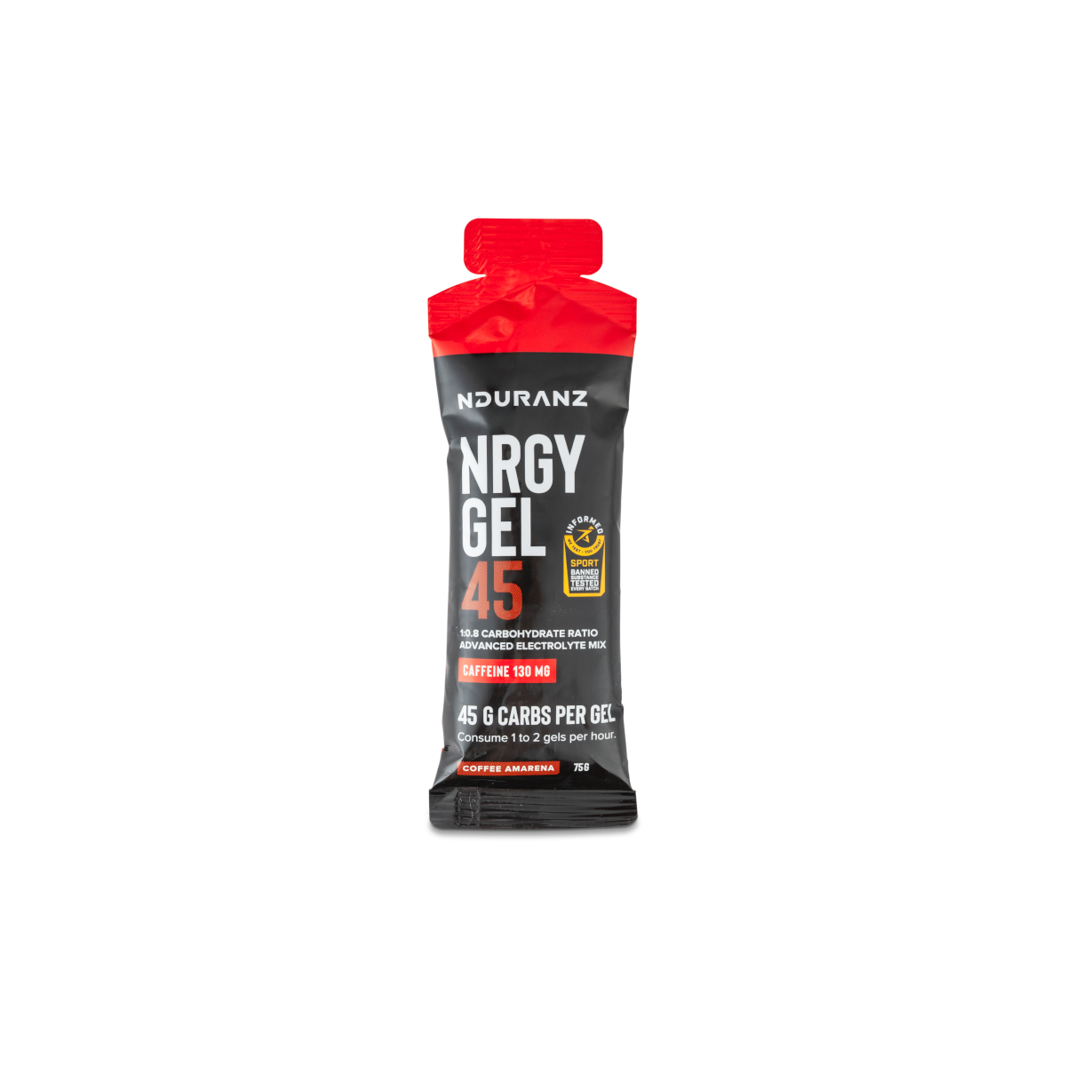 Nrgy Gel 45 con cafeína ha sido diseñado para atletas de resistencia que desean una fórmula de combustible y electrolitos respaldada por la ciencia con una pizca de cafeína.