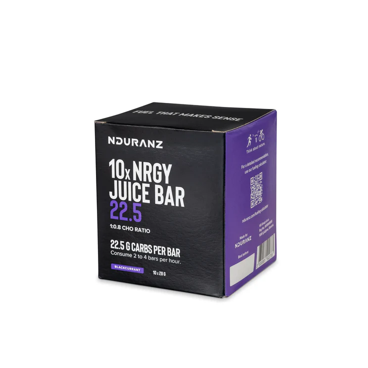 Cargada de carbohidratos de acción rápida en una proporción óptima, Nrgy Juice Bar 22,5 tiene un sabor delicioso, una textura suave y un tamaño de bolsillo que la hace perfecta para llenarse de energía.