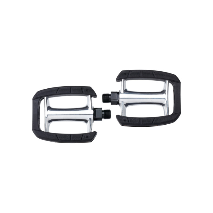 " Cuerpo de aleación con jaula de plástico" Con superficie de Kraton antideslizante" Eje de CrMo con rodamientos de bolas" Con reflectores" Fabricado con materiales reciclados