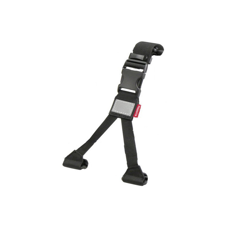 La correa ajustable con reflector se sujeta fácilmente al ligero marco de aluminio del portaequipajes KLICKfix Vario Rack Sport. Gracias al gran cierre central, el equipaje puede fijarse en un santiamén en la amplia superficie de apoyo.