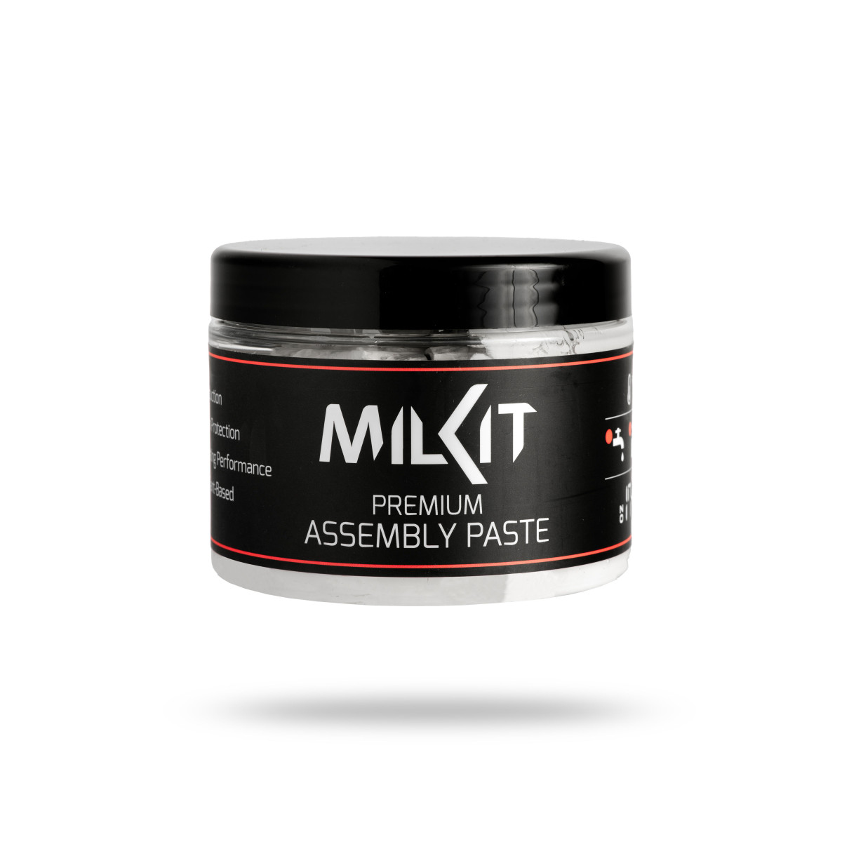 Milkit Premium Assembly Paste es una pasta de montaje diseñada para uniones roscadas y componentes mecánicos cuando se realiza el mantenimiento de piezas de bicicleta u otras aplicaciones en las que intervienen tornillos y pernos. Reduce la fricción, facilitando el atornillado al minimizar la fricción entre las piezas.
