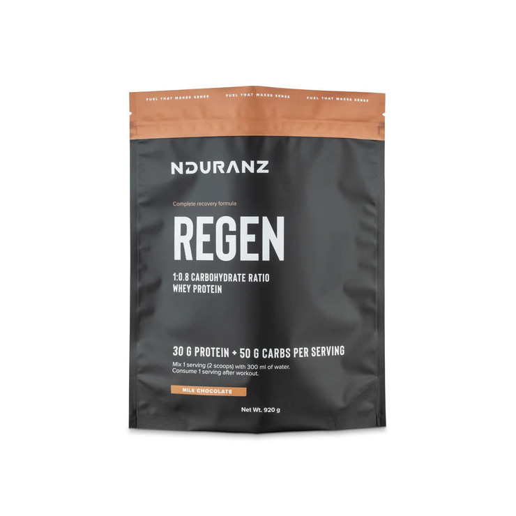 Regen es una bebida de recuperación científicamente probada que contiene 30 g de proteína de suero, 50 g de carbohidratos y 282 mg de sodio.