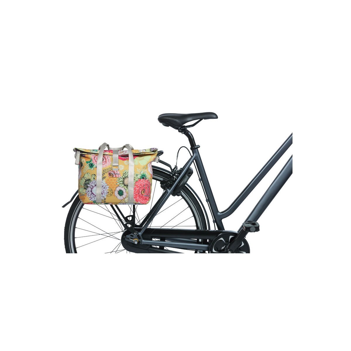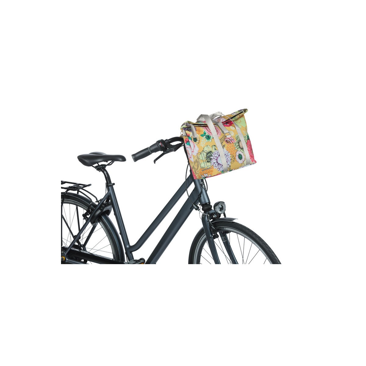 A Basil Bloom Field é uma mala de mão alegre que pode ser fixada à bicicleta de várias formas. A bolsa amarela é ideal para transportar todo o tipo de acessórios.
