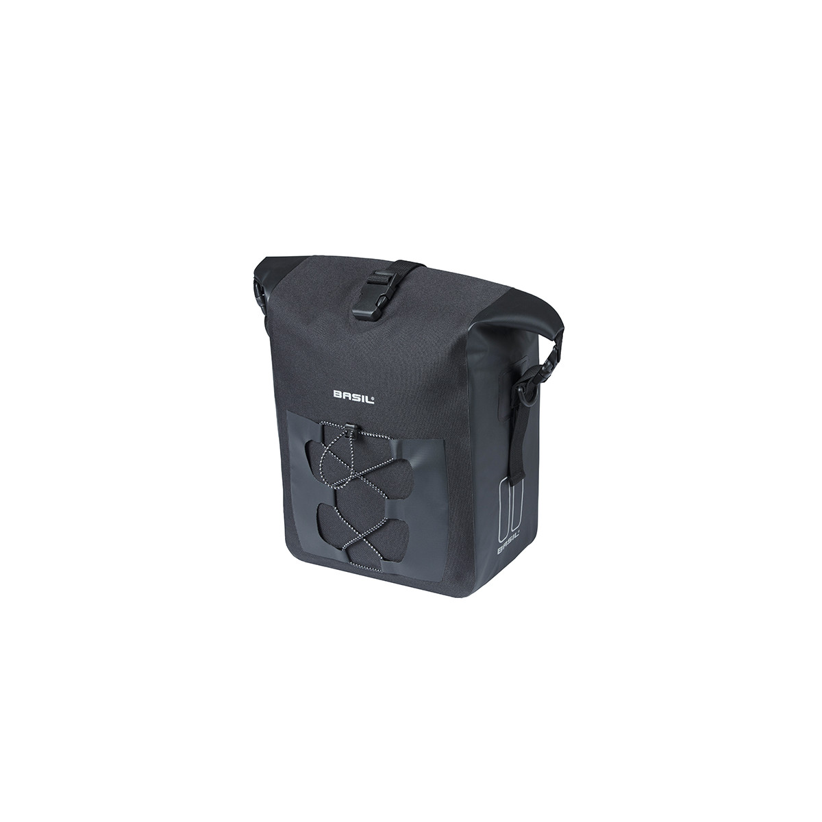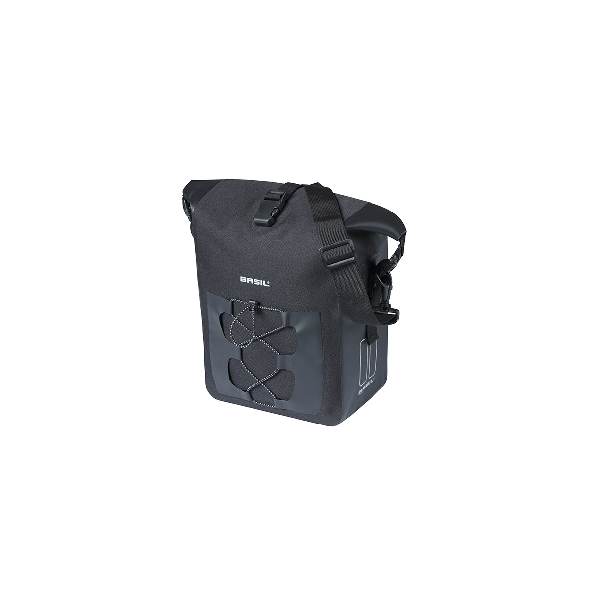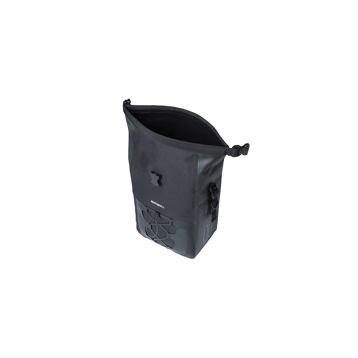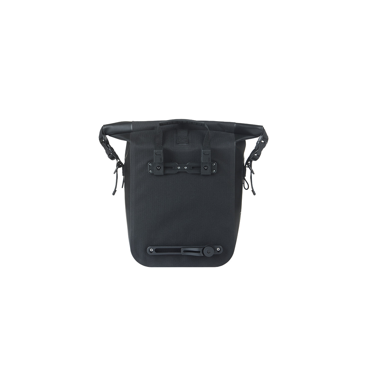 Este saco preto desportivo tem uma capacidade de 12 a 15 litros e fixa-se facilmente ao porta-bagagens da bicicleta graças ao sistema MIK Hooks.