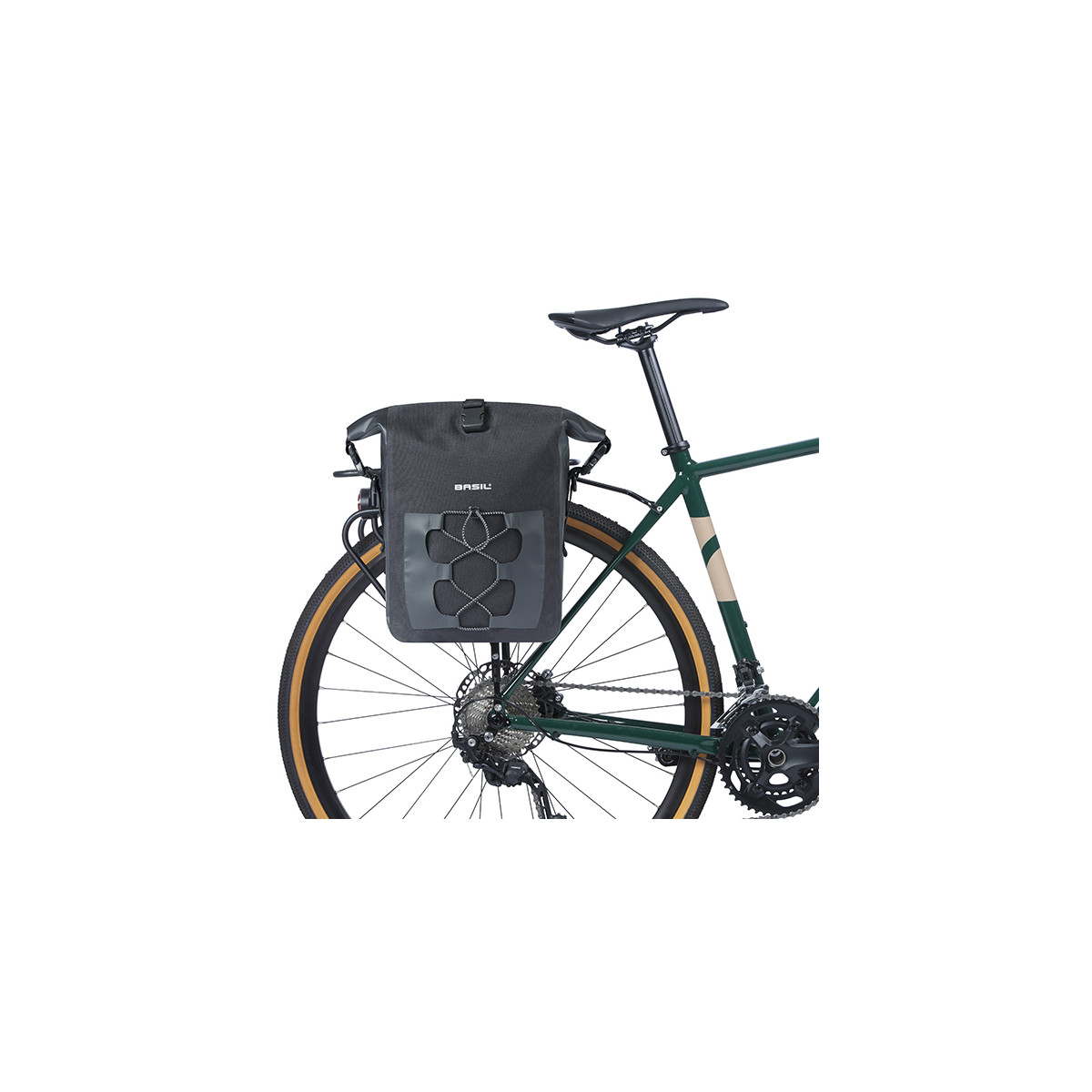 O Basil Navigator Waterproof M é um saco de bicicleta simples para a parte de trás da bicicleta de uma mulher ou de um homem.
