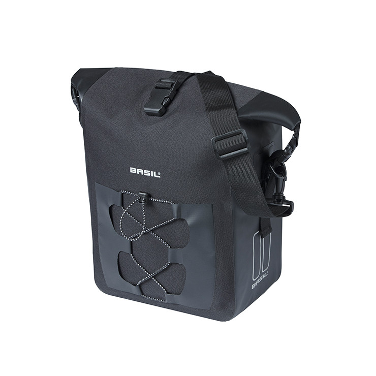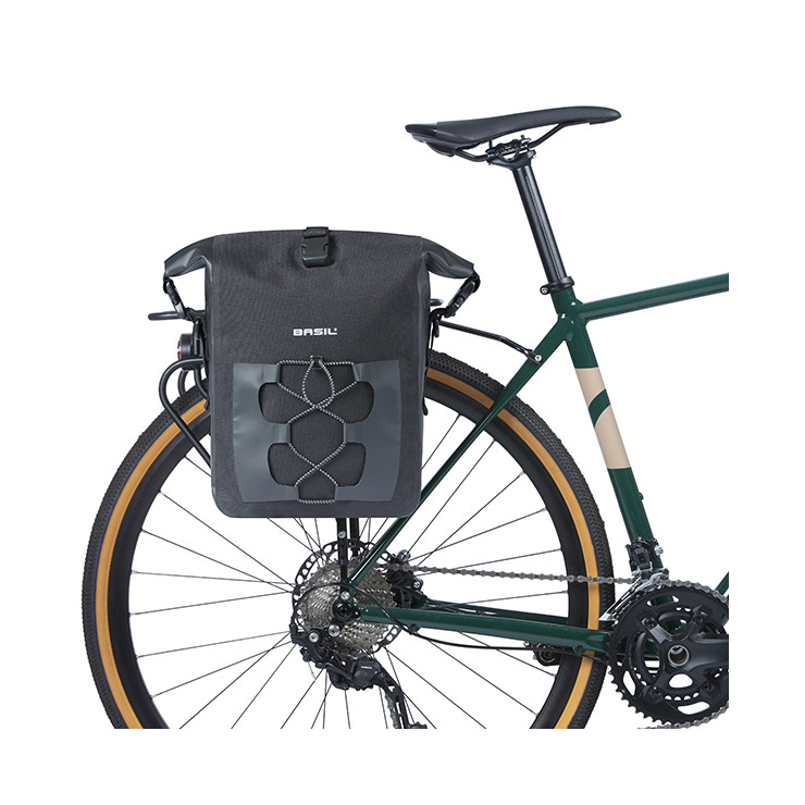 O Basil Navigator Waterproof M é um saco de bicicleta simples para a parte de trás da bicicleta de uma mulher ou de um homem.