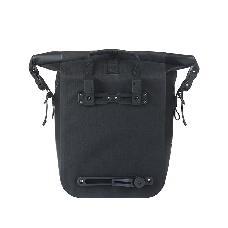 Este saco preto desportivo tem uma capacidade de 12 a 15 litros e fixa-se facilmente ao porta-bagagens da bicicleta graças ao sistema MIK Hooks.