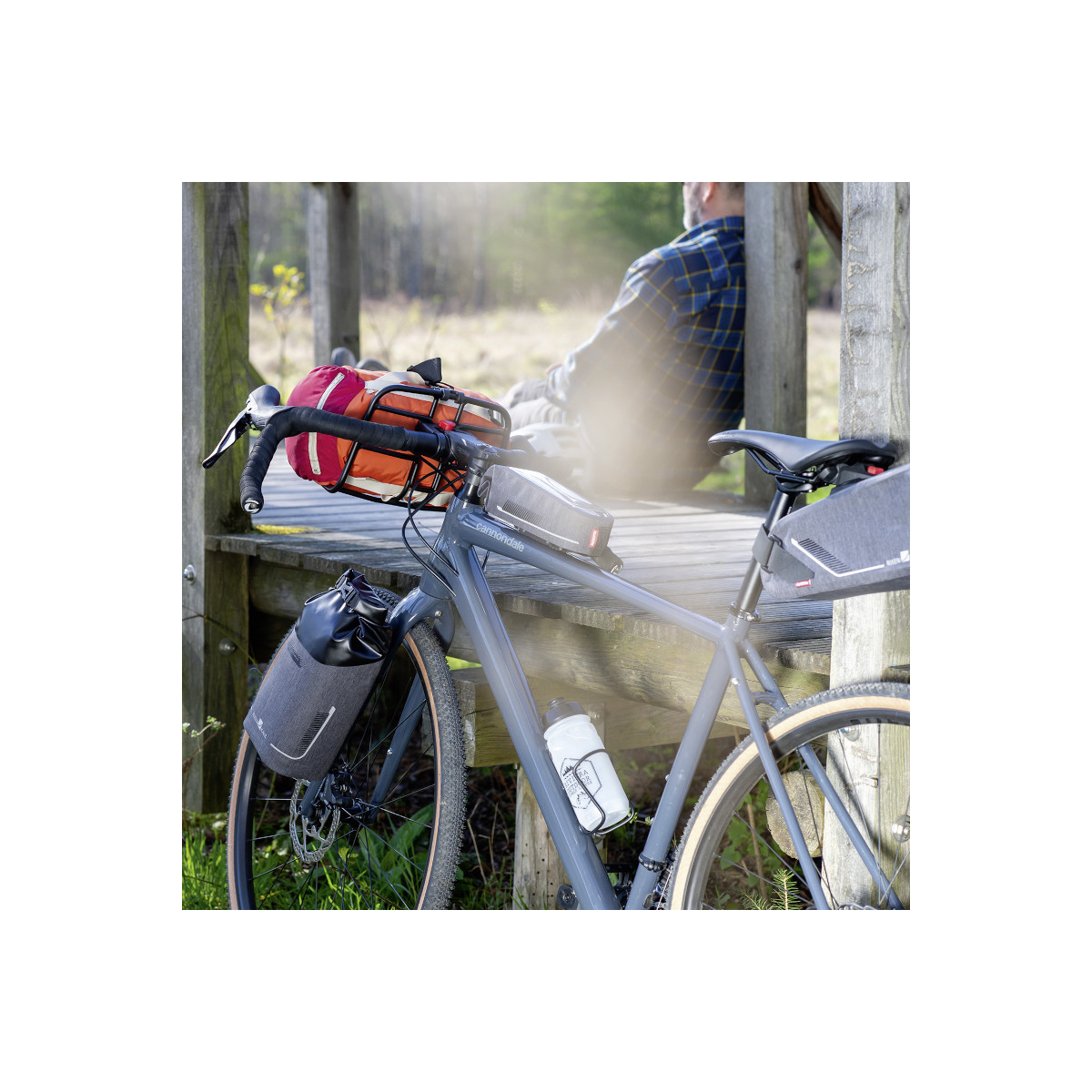 Saco de garfo prático e impermeável com fecho de enrolar, que pode ser fixado com segurança com um clique e retirado puxando a correia graças ao acoplamento Duo. O adaptador Duo extra-plano garante que o saco fica perfeitamente junto ao quadro e a construção interior estável protege o saco de torções. Nos garfos com uma única rosca, o saco também pode ser montado com o adaptador Duo Unifit, aparafusado numa única rosca do quadro, em combinação com 1 ou 2 correias de aço.