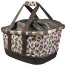 Cesto em tecido leve Reisenthel com base sólida termoformada e pegas flexíveis. A forma clássica e inclinada do cesto proporciona muito espaço para a sela e o cavaleiro. Um bolso interior com fecho de correr oferece espaço para pequenos objectos. As placas de reforço podem ser retiradas para que o cesto possa ser dobrado na horizontal.