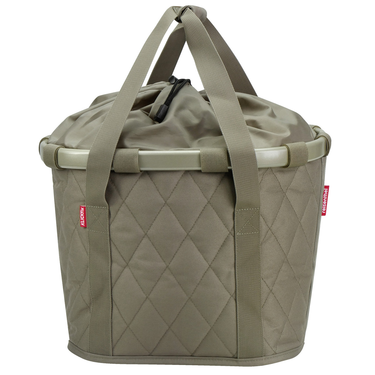 Uma parceria entre duas grandes marcas. O elegante cesto da Reisenthel tem um aro de metal único que acomoda o fecho KLICKfix. Mesmo quando está a pé, o Bikebasket é um bom companheiro de compras - mais atrativo do que muitas malas de mão. Todos os modelos incluem um bolso frontal, um compartimento interior com fecho de correr, um bolso para telemóvel, um fecho de correia e um pequeno bolso multifunções amovível. Disponível numa gama de modelos; fabricada em poliéster resistente.