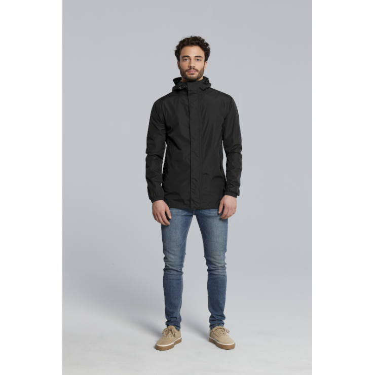 O casaco preto é fornecido com um saco de arrumação e está disponível nos tamanhos XS a XXXL.