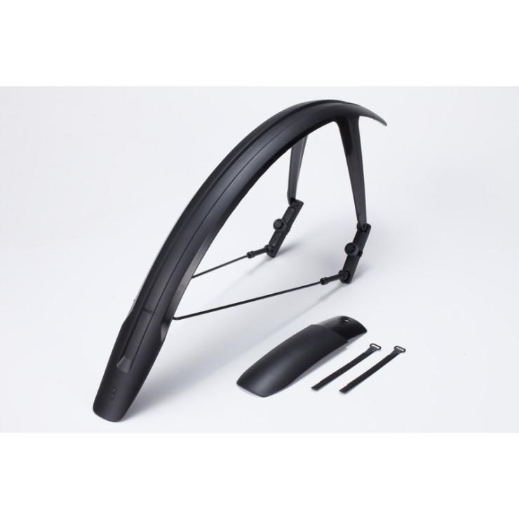 Guarda-lamas traseiro de libertação rápida e cobertura total para bicicletas com travões de disco, agora compatível com uma gama mais alargada de tamanhos de pneus de 40 mm a 60 mm.