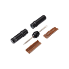Os pneus sem câmara de ar têm muitas vantagens! No entanto, os pneus sem câmara de ar têm uma grande desvantagem: se tiver um furo, a reparação não é tão fácil como com uma câmara de ar normal. Este problema está agora completamente resolvido graças ao PuncturePlugger! Um pequeno kit de reparação fácil de utilizar durante o percurso, para que possa voltar ao selim em apenas alguns minutos. O PuncturePlugger contém tudo o que é necessário para reparar um pneu sem câmara furado, tudo embalado numa caixa/alça de armazenamento atraente, leve e compacta, fabricada em CNC. O PuncturePlugger beneficiará todos os que conduzem sem câmara de ar!
