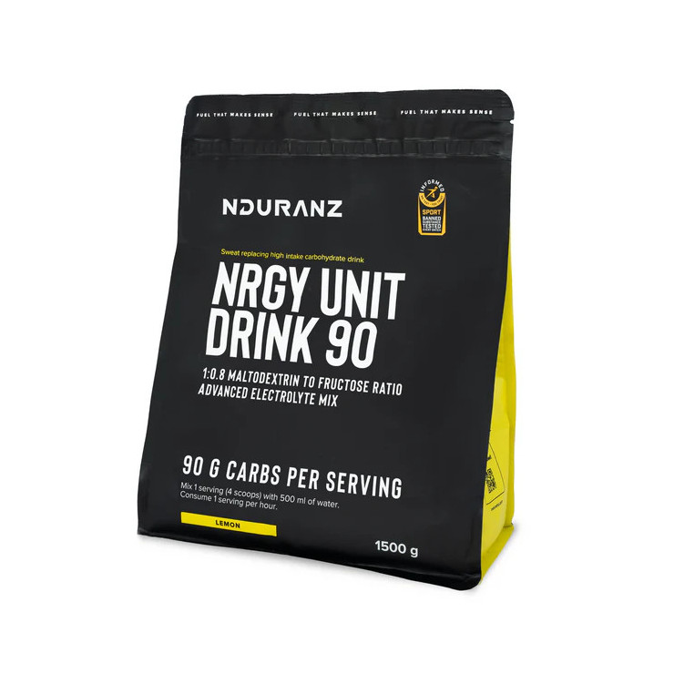 Nrgy Drink 90 é uma bebida desportiva adaptada a um consumo energético mais elevado. Embora ofereça a mesma quantidade de hidratos de carbono por dose (22,5 g) que a Nrgy Drink 45, a quantidade de electrólitos e a intensidade do sabor são adaptadas à maior quantidade numa única garrafa.