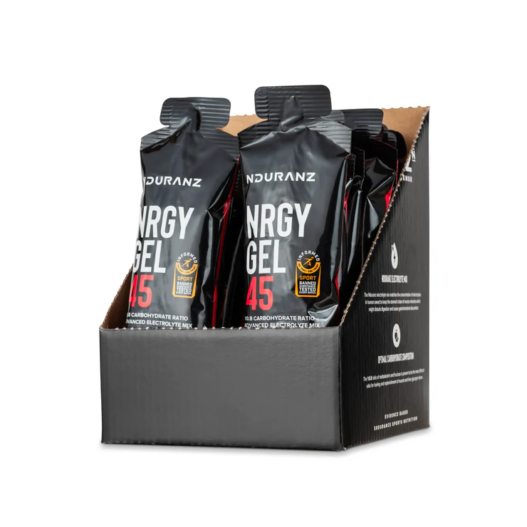 Nrgy Gel 45 contém Nduranz Electrolyte Mix, uma mistura avançada de minerais que corresponde aos electrólitos que se perdem quando se transpira.