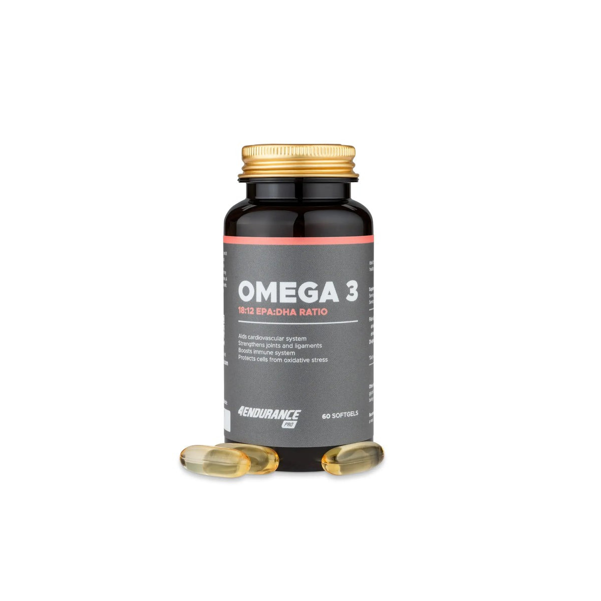 Os ácidos gordos ómega 3 do 4Endurance Pro fornecem 360 mg de EPA, 240 mg de DHA e 10 mg de vitamina E por dose, ajudando-o a fortalecer o sistema cardiovascular e a melhorar a saúde do cérebro.