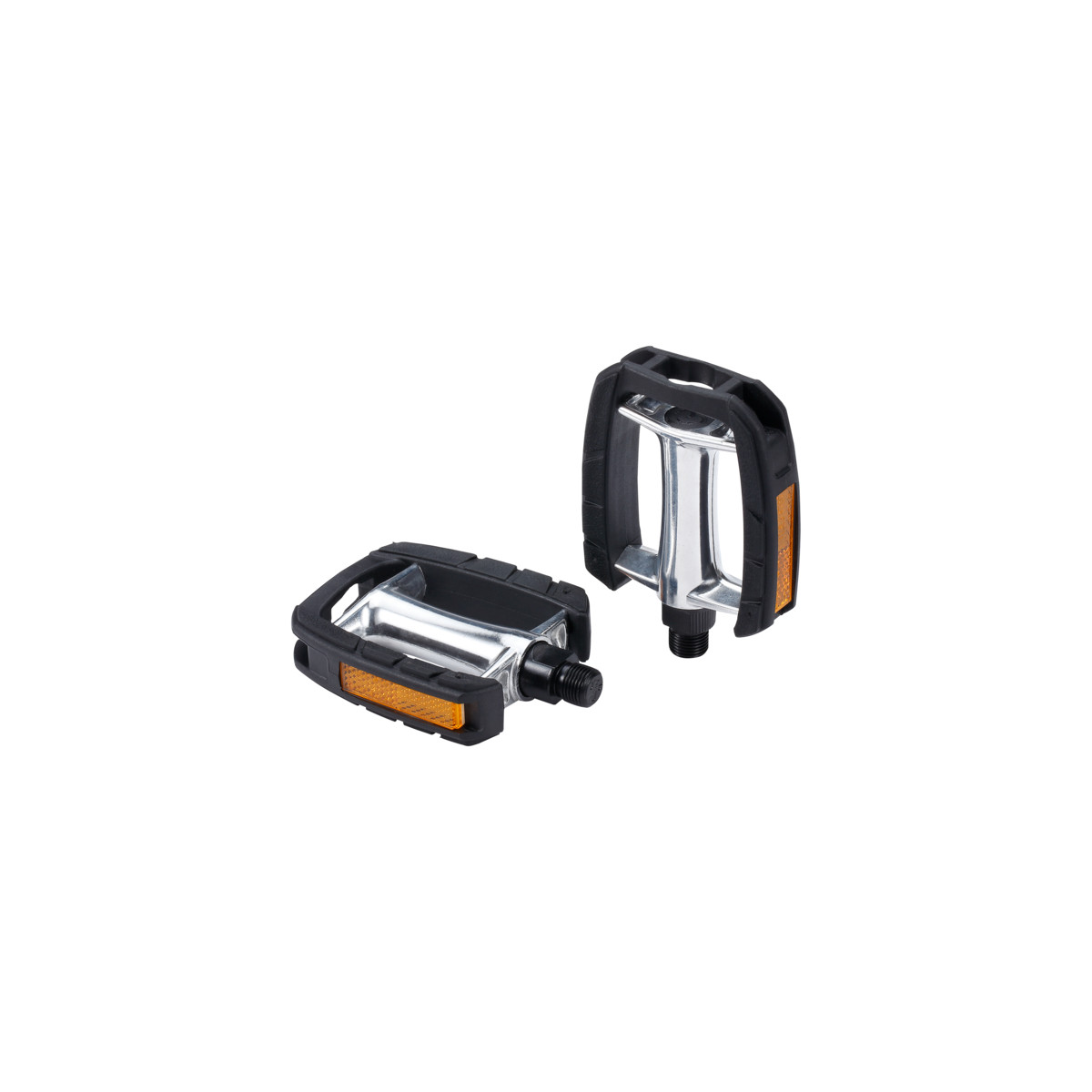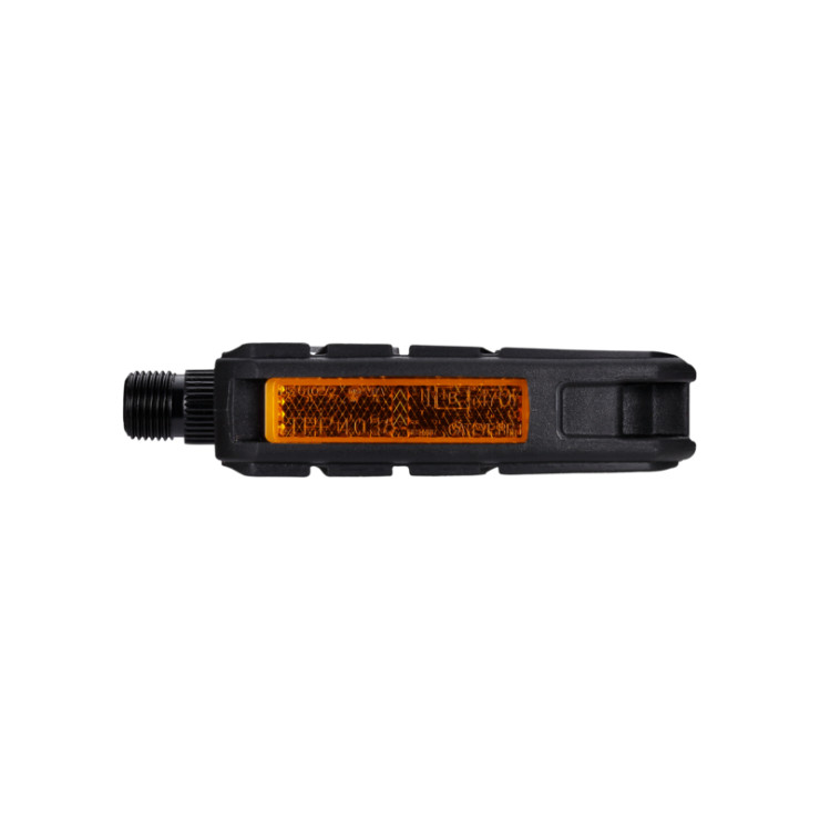 " Corpo em liga metálica com gaiola de plástico" Com superfície Kraton antiderrapante" Eixo CrMo com rolamentos de esferas" Com reflectores" Fabricado a partir de materiais reciclados